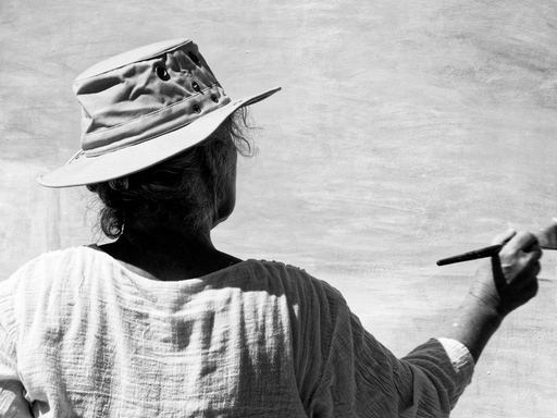 The free and easy wanderer. My painting and drawing work is poetical, concrete and abstract. Characteristic is the use of colour fields often in combination with lines and drawings. The colour fields are layered, generally monochrome. The drawings are informal. They are of themselves and in themselves and do not refer to a hidden meaning.